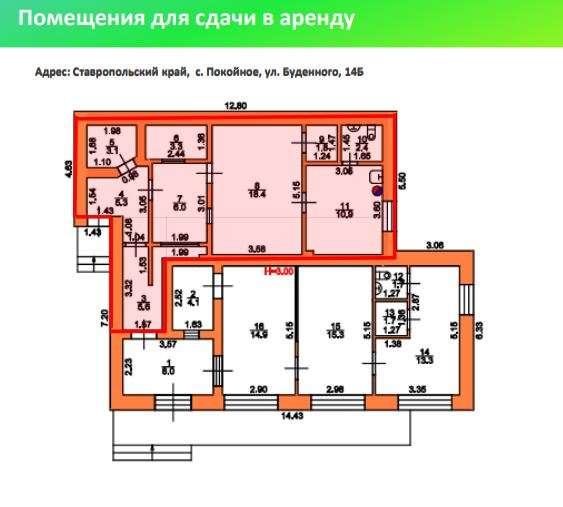 Сбер А предлагает к аренде нежилое помещение площадью 72,6 кв. м., расположенное по адресу: Ставропольский край, Буденновский муниципальный округ, село Покойное, улица Буденного, здание 14б