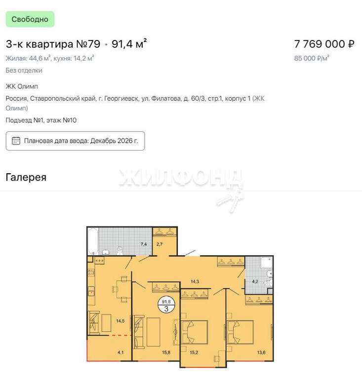 Продажа 3-комнатной квартиры, Георгиевск, Филатова ул., 60, Ставропольский край