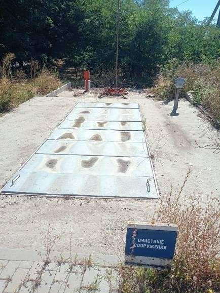 - Блок очистных сооружений: Очистные сооружения (пластиковый контейнер) смонтирован совместно с монолитным железобетонным саркофагом.