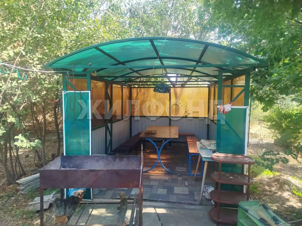 Во дворе вы найдете гараж, хозяйственные постройки, беседку и зону для отдыха. В саду растут фруктовые деревья и кустарники, создавая уютную атмосферу.